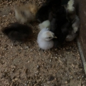 One week old baby chickens. Black bantams and white silkies great pets and great layers. Ready to go 3 white 4 black in total